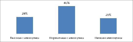 Учитывая результаты методики направленной на изучении уровня самооценки, можно сделать вывод, что и в той, и в другой выборке превалирует нормальный уровень самооценки. Хотя в группе, где подростки не занимаются спортом, процент с низкой самооценкой (26 %) больше, чем в группе подростков-спортсменов (14 %).