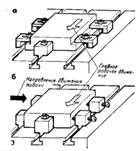 Установку и крепление на столе станка заготовки с плоскими опорными поверхностями можно выполнить двумя способами: при наличии у заготовки по бокам выступов или полок, ее крепление производят по схеме, показанной на рис.; заготовки без боковых выступов или отверстий крепят по схеме, изображенной на рис. б. Прижатие заготовки к столу станка в этом случае производят с помощью боковых винтовых или клиновых прижимов. Упоры располагают таким образом, чтобы они воспринимали силы резания. Все упоры и прижимы по высоте должны быть ниже заготовки, чтобы обеспечить свободный проход резцу.