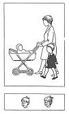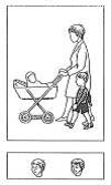 2. Ребёнок и мать с младенцем. "Как ты думаешь, какое лицо будет у этого ребёнка: печальное или весёлое? Он (она) гуляет со своей мамой и малышом".