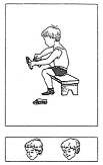 . Одевание. "Как ты думаешь, какое лицо будет у этого ребёнка: печальное или весёлое? Он (она) одевается".