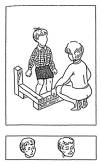 . Укладывание спать в одиночестве. "Как ты думаешь, какое лицо будет у этого ребёнка: печальное или весёлое? Он (она) идёт спать".