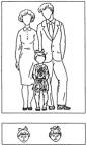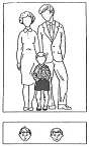 . Ребёнок с родителями. "Как ты думаешь, какое лицо будет у этого ребёнка: печальное или весёлое? Он (она) со своими мамой и папой".