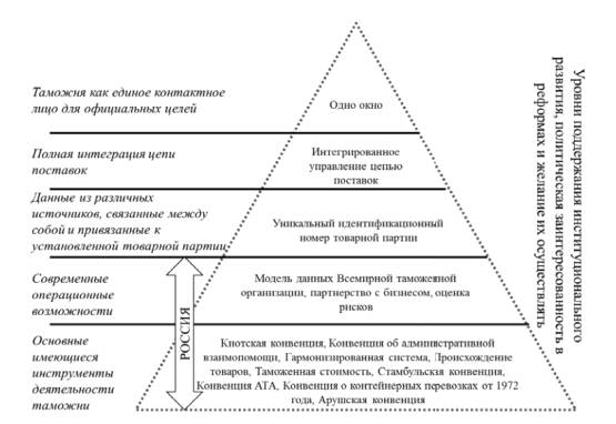 Присоединение к международному конвенциональному базису обеспечивает таможенной службе России выход на принципиально иной уровень операционных возможностей. Концепция определяет принципы и соответствующие достижимые уровни таможенного администрирования, а также ориентирует на создание таможни как единого контактного лица в процессе таможенного регулирования и контроля.