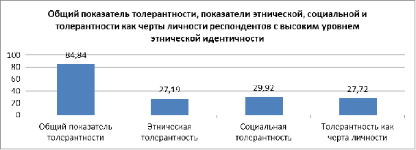толерантности респондентов с высоким уровнем этнической идентичности