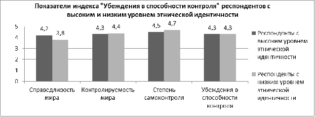 способности контроля» у респондентов с высоким и низким уровнем этнической