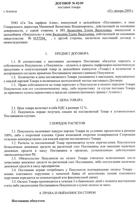 Региональный центр Компании Си Эль парфюм в лице директора Баландиной Елен,. действующего на основании Положения с одной стороны, и Людовских Сргей Владимирович, занимающий должность заведующего складом, с другой стороны заключили настоящий договор о нижеследующем: