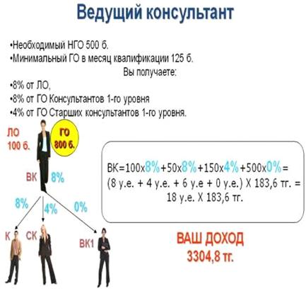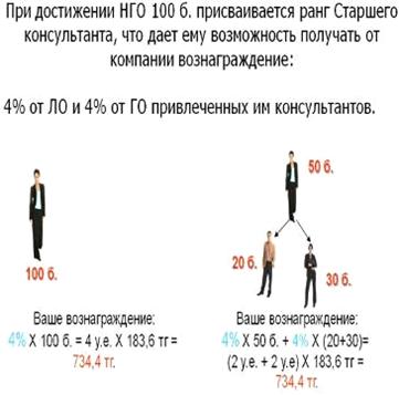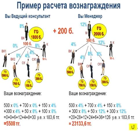 В случае если дистрибьютор помогает другим начать их собственный бизнес и осуществляет обучение и информационную поддержку, компания выплачивает ему вознаграждение, размер которого зависит от объема продаж его бизнес-партнёров.