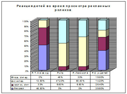 проводилось наблюдении за детьми во время просмотра рекламной продукции (ТВ -