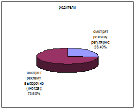 опрошенных детей говорят о том, что они смотрят рекламу постоянно. 73,6%