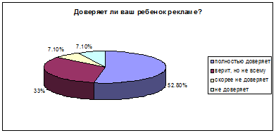 том, что их дети полностью доверяют рекламе, эти данные совпадают с данными,