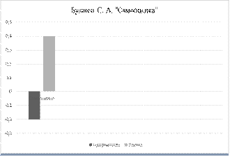 В первую очередь проанализируем данные о самооценке подростков, участвовавших в исследовании. Данные получены с помощью использования методики Будасси С.А. Результаты представлены на рисунке 2. Среднее значение по данной методике у обучающихся лицея составило -0,2, что говорит о тенденции к занижению своей самооценки. У школьников, обучающихся в школе № 37 среднее значение по данной методике составило 0,4. Данный показатель свидетельствует о наличии значимой положительной связи между Я- идеальным и Я-реальным. Причинами тенденции к низкой самооценке могут служить сомнения одаренных школьников в своих силах. Одаренные люди всегда сомневаются в том, верно ли они поступают, соответствуют ли их действия ожиданиям окружающих.