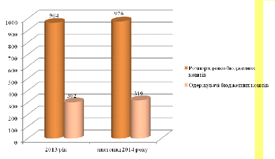 Розглянемо сучасні тенденції казначейського виконання місцевих бюджетів на прикладі зведеного бюджету Чернівецької області. Органи Казначейства України у цій області здійснюють казначейське обслуговування бюджетних коштів 286 місцевих бюджетів. Кількість розпорядників коштів місцевих бюджетів коливається від 964 у 2013 р. до 976 у 2014 р. та одержувачів - від 302 до 319 (рис.1).