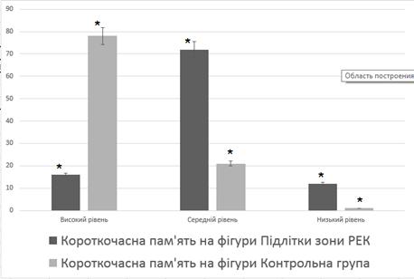 короткочасної пам’яті на фігури підлітків зони РЕК порівняно з контрольною