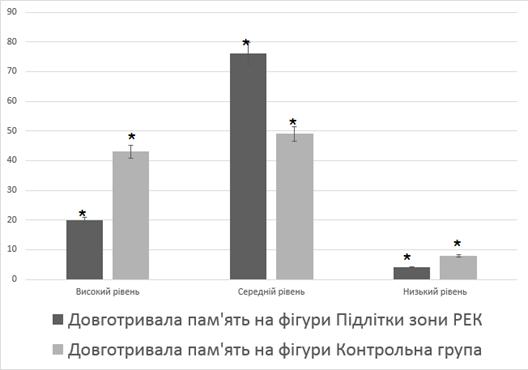 довготривалої пам’яті на фігури підлітків зони РЕК порівняно з контрольною