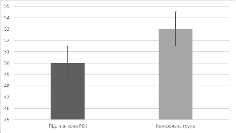 інтенсивності уваги підлітків зони РЕК порівняно з контрольною групою.