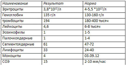 Заключение: на фоне проводимой терапии заметно снижение СОЭ.