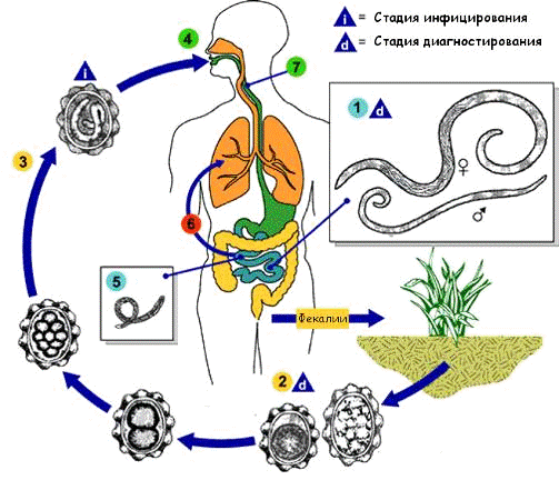 Так, аскаридоз в соответствии с эпидемиологической классификацией является антропонозным геогельминтозом, так как на ранних стадиях личиночного развития яйца паразитов развиваются во внешней среде, с фекально-оральным (пассивным) механизмом передачи возбудителя.