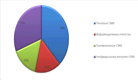 информационные агентства (15%) и телевизионные СМИ (15%).