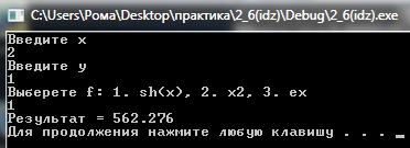 cout << "Выберете f: 1. sh(x), 2. x2, 3. ex" << endl; cin >> k;