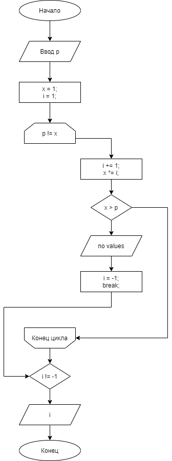 Факториал некоторого числа равен p. Найти это число. Написать программу с использованием цикла while.