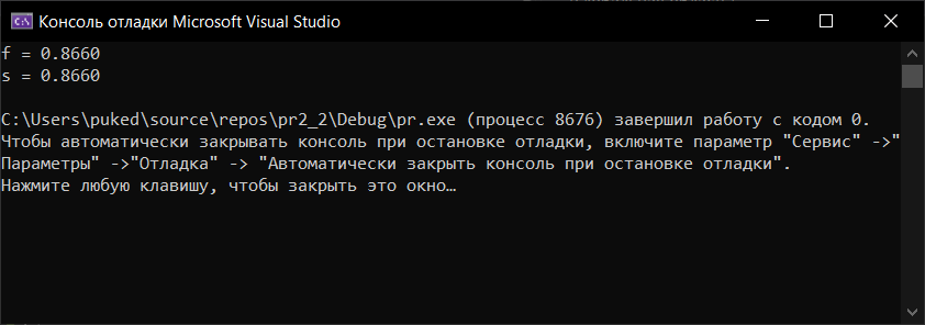 printf("f = %.4lf\ns = %.4lf\n", f, s);