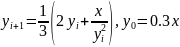 y_next = (1. / 3) * (2 * y + (x / pow(y, 2)));