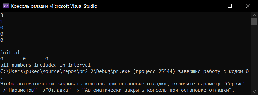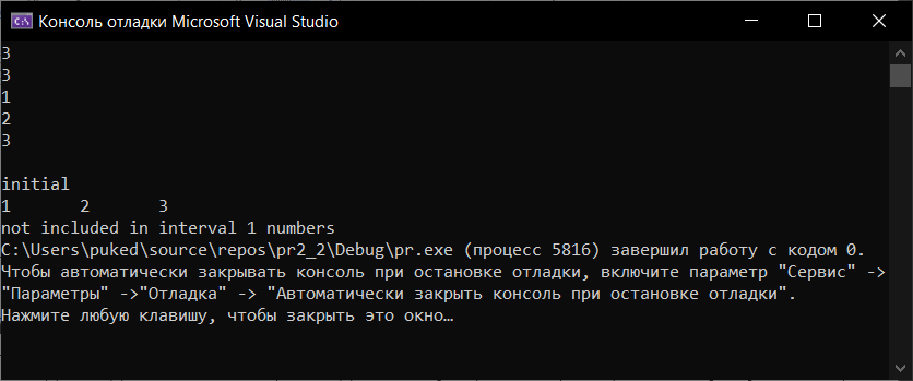Ожидаемые результаты и результаты тестирования совпали. Поэтому можно сказать, что программа работает правильно.