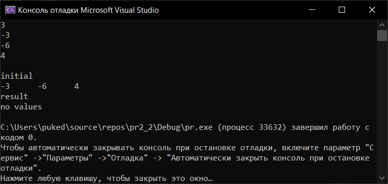 printf("no values\n");