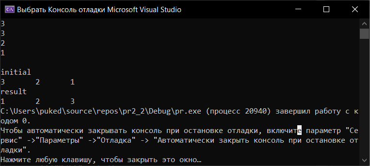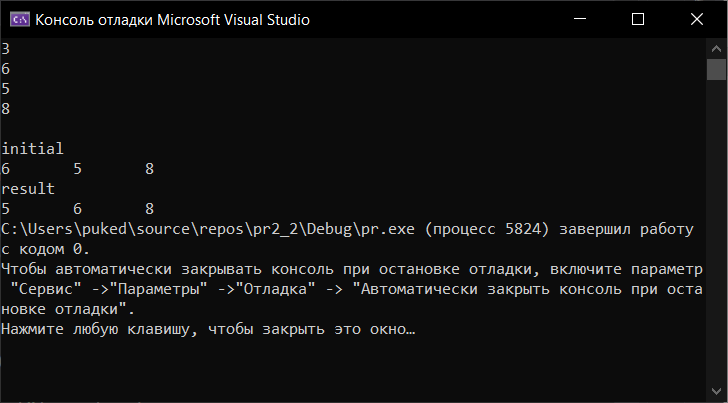 Ожидаемые результаты и результаты тестирования совпали. Поэтому можно сказать, что программа работает правильно.