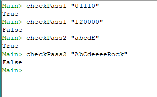 putStrLn ("1a) 01110 is bin? = " ++ show (checkPass1 "01110"))