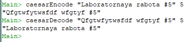 ++ show(caesarDecode (caesarEncode "AbbA" 5) 5))