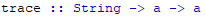 Функция trace принимает 2 аргумента: первый – строка, которая будет выведена на экран; второй – значение, которое будет возвращено. Для остальной программы данная функция будет считаться «чистой».