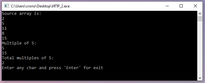 msgSorted db "Multiple of 5:", CRLF, 0 ; вступление к выводу чисел кратных 5