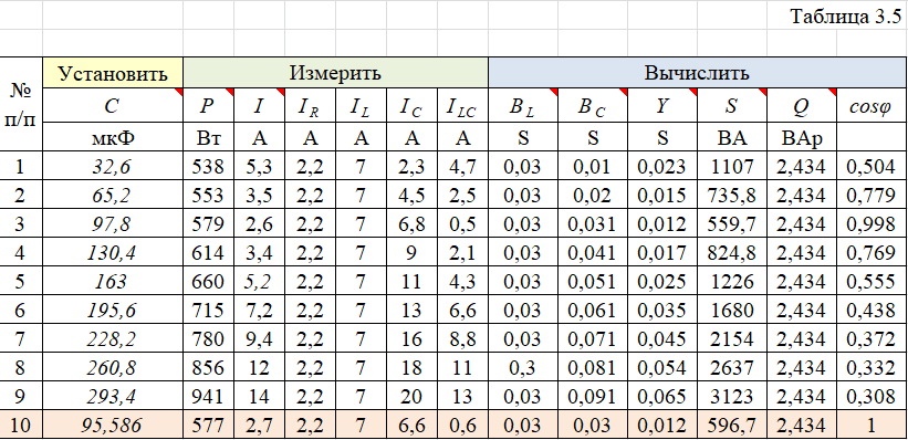 По результатам вычислений построить на одном поле графики BL(C), BC(C), Y(С) и отдельно cosφ(C).