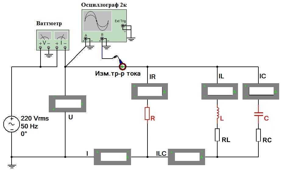 Собрать в MultiSim схему электрической цепи с параллельным соединением элементов R, L,C (рис. 3.2) (см. ссылку 32). Возможно также использовать копию примера, поскольку схема одна для всех вариантов задания, но параметры цепи различны.