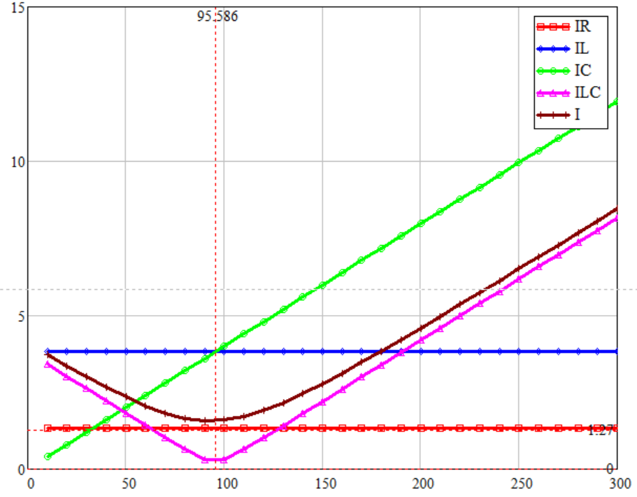 По результатам измерений построить на одном поле графики I(С), IR(С), IL(С), IC(С), ILC(С).