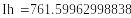 Ih:= 761.599629988383 Rh:= 0.00037001161717853 |