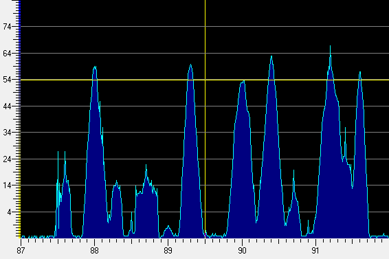 Рисунок 2.4 Монiторинг випромiнення аналагових радiо та теле станцiй на частотi близько 90МГц.