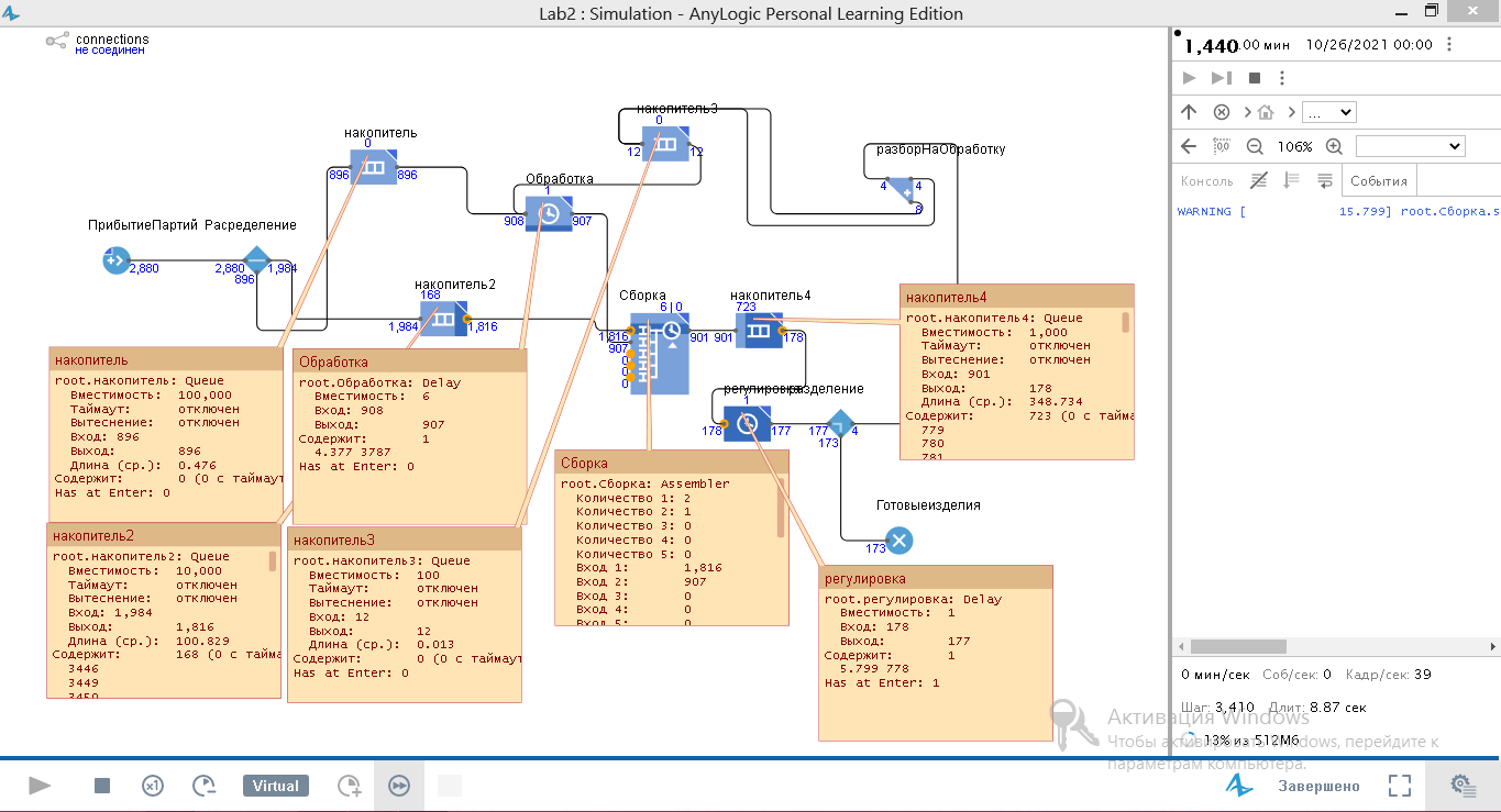 Модель на Anylogic: