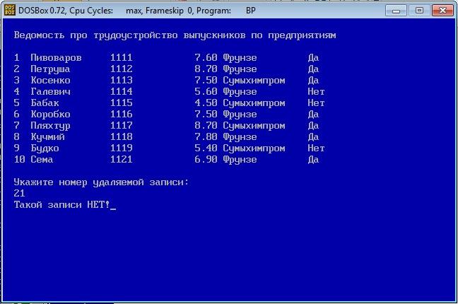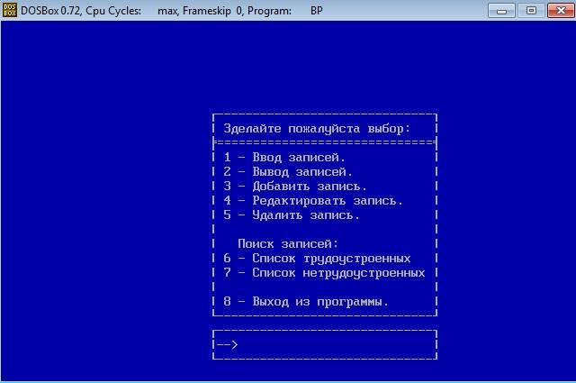 gotoXY(30,18); writeln('| 7 – Список не трудоустроенных |');