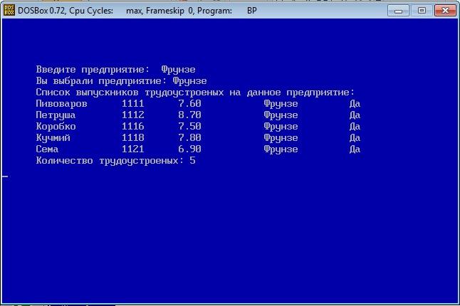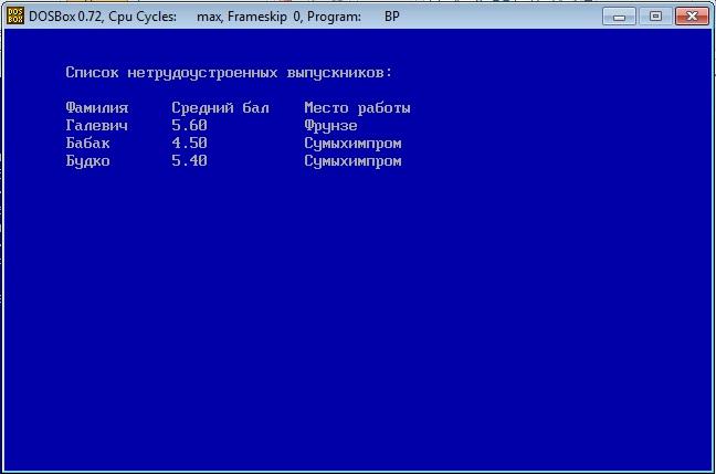 gotoXY(30,17); writeln('| 6 – Список трудоустроенных |');