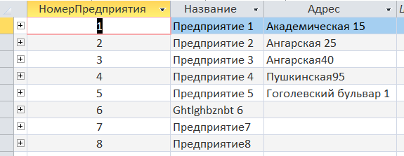 VALUES (8, 'Предприятие8');