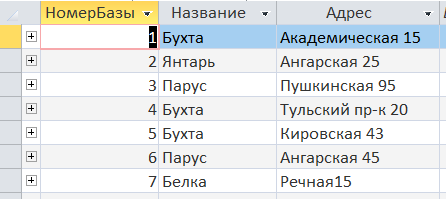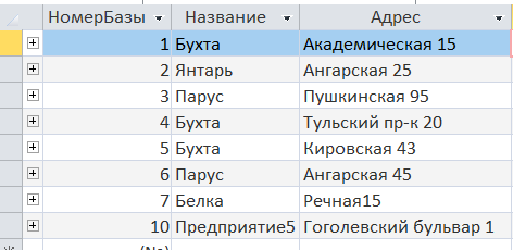 Добавление в таблицу «Оптовая_База» сведений о базе, у которой адрес и название будут такими же как у Предприятия5.