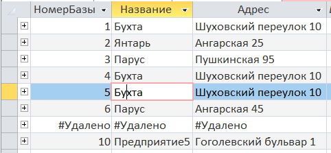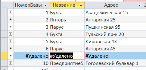 Удаление из таблицы «Оптовая_База» данных базы Белка.