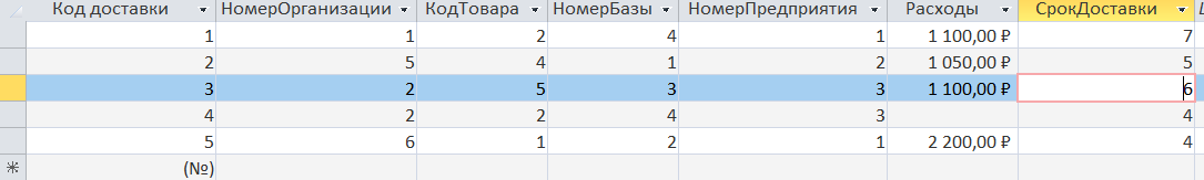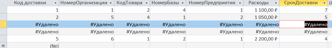 Удалить из таблицы «Доставка» строк, в которых НП = 3