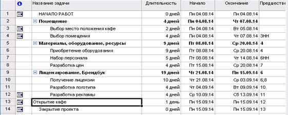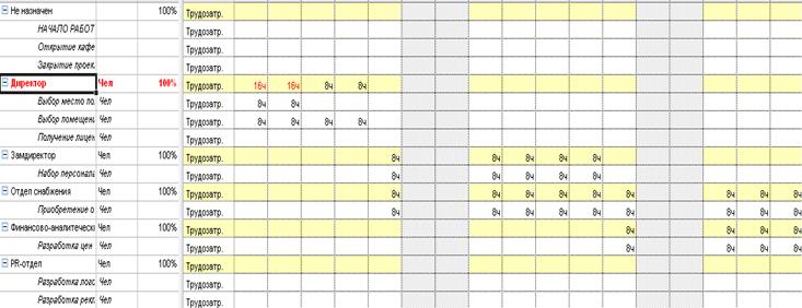Применим вышеописанную методику на примере проекта по "Открытию кафе". Рассмотрим методы планирования, приемы составления бюджета с использованием человеческих и материальных ресурсов.