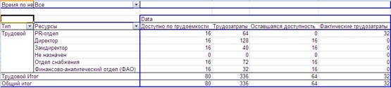 Рисунок 15. Отчет о доступности ресурсов по трудоемкости