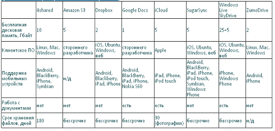 Сравнительные характеристики облачных хранилищ