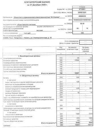 Бухгалтерский баланс ООО «ИТ-СЕРВИС» за 2009 год