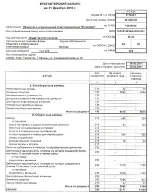 Бухгалтерский баланс ООО «ИТ-СЕРВИС» за 2010 год